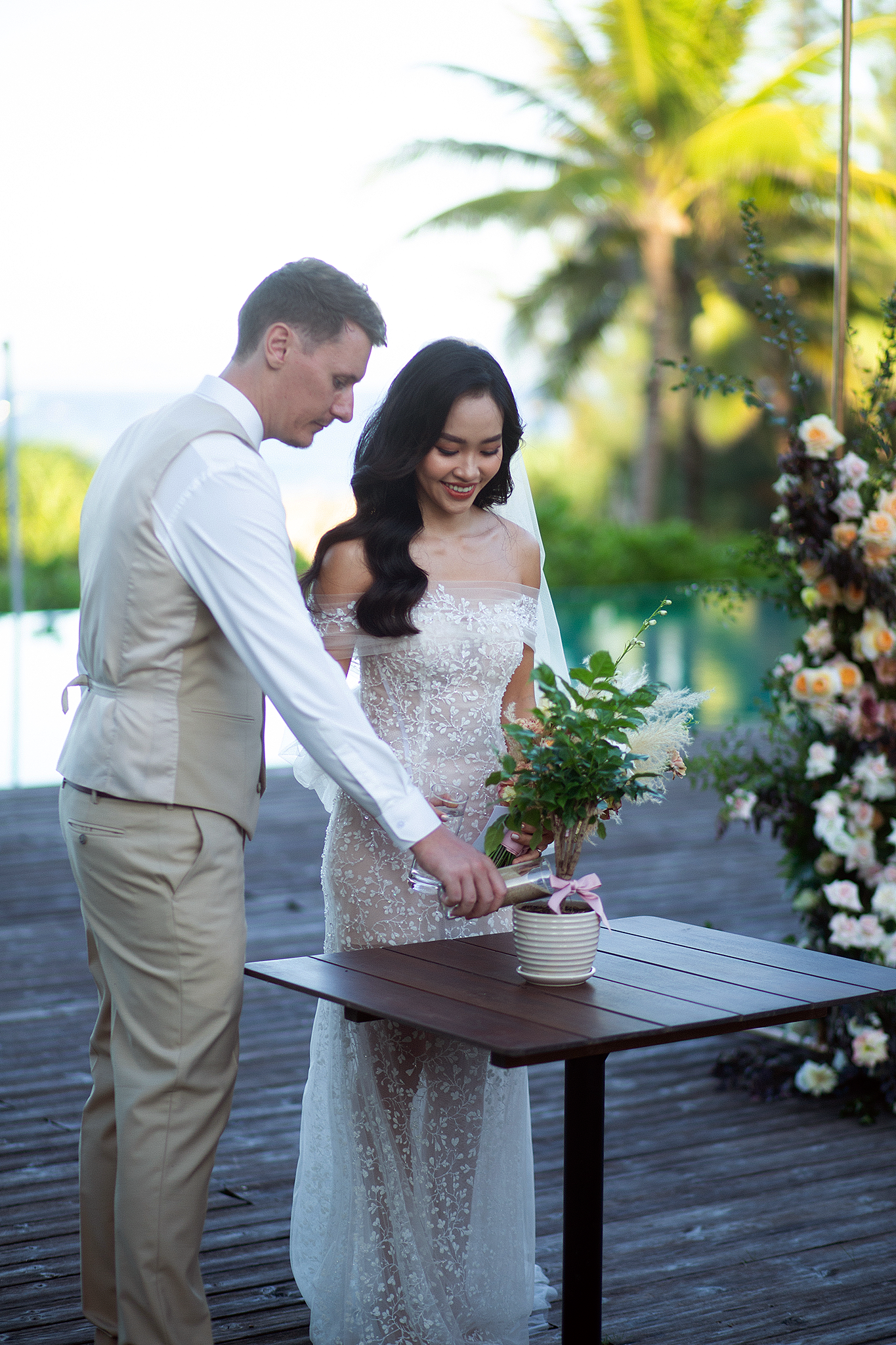 Eileen and Andy hired DreamWeds, one of the leading destination wedding planners, to fulfil their desire of celebrating an elegant corporate style wedding in Vietnam. With days of planning and arrangements, DreamWeds team toiled hard to bring their vision to life. All the elements integral to the corporate theme were taken into consideration and closely discussed with both of them. The guests also relished every bit of the celebration and had an incredible experience through attentively organized activities at the destination.