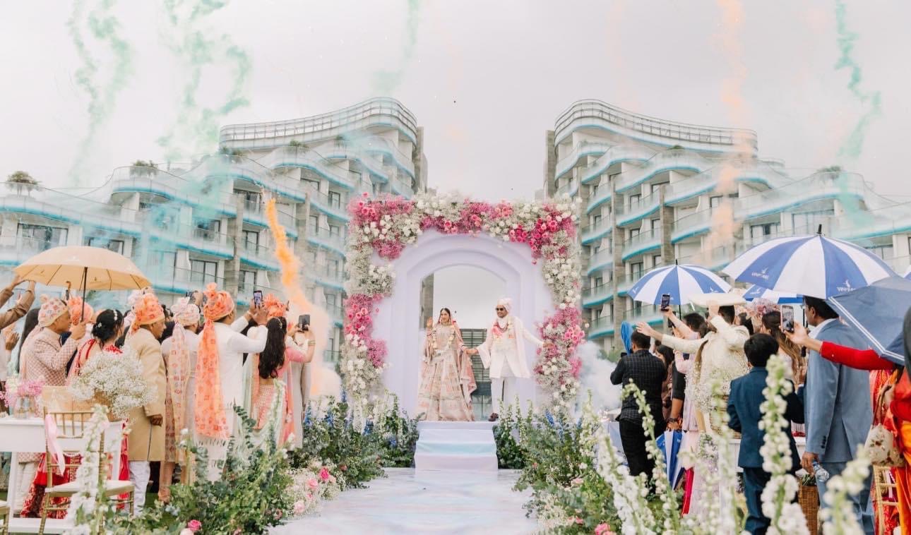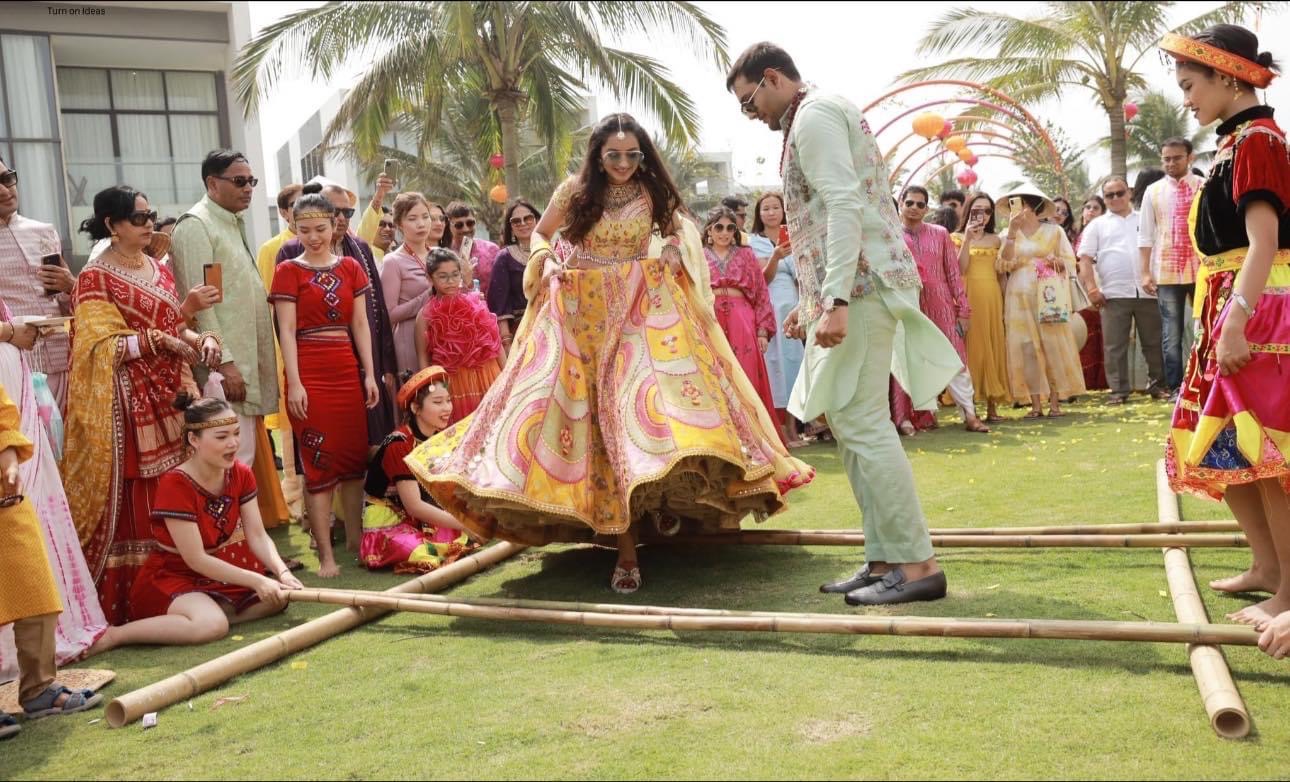 Love was in the air… when R and S exchanged vows at a stunning location in Vietnam. This magical wedding witnessed spaces adorned with beautiful tropical flowers, soft fairy lights, and comfortable seating zones for guests. The couple wanted everything subtle. Thus, the theme was designed combining simple elements yet reflecting grace and elegance. It was an intimate affair with a gathering of close family members and friends. It became all the more beautiful when the dusk set in. Everything went just perfect as per their preferences and budget.